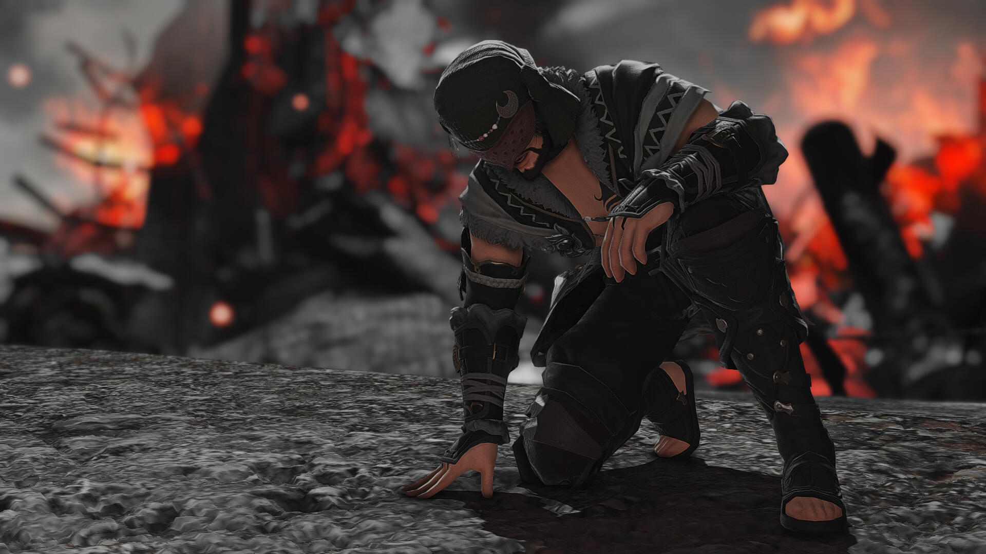 The Lominsan's re-emergence into public life featured a dishonorable discharge, a new family, and a dogged determination to pursue further martial training. This journey led him northward, first to the Holy See of Ishgard where he exchanged his skills and services for living expenses, and then to Gyr Abania in the wake of the Eorzean Alliance. There he passed from one mentor to another, and he spent many a moon torn between his passion for the Art, his love for his family, and his hatred for the Garlean Empire. Though he was not present at Ghimlyt Dark, he later volunteered his services to the Bozjan Resistance as they fought to take back their homeland.• Mercenary & Monk •